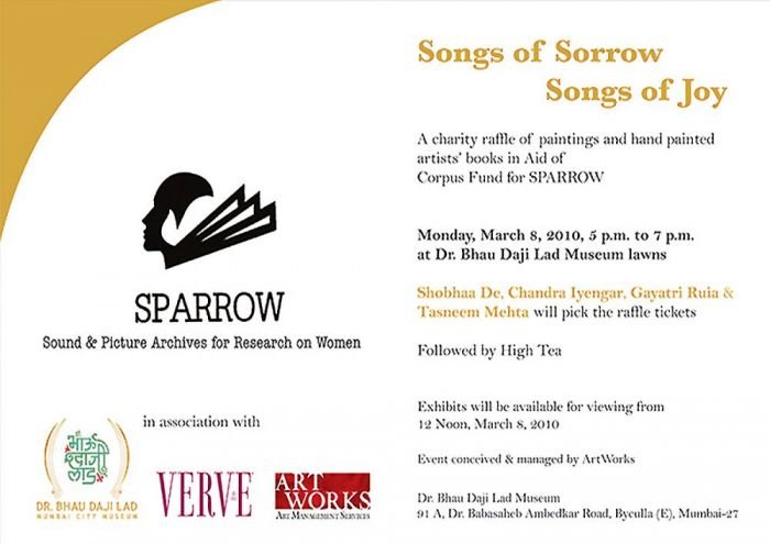 A Charity Art Raffle organized by Dr. C S Lakshmi and Anupa Mehta, in aid of a corpus fund for SPARROW (Sound & Picture Archives for Research on Women)