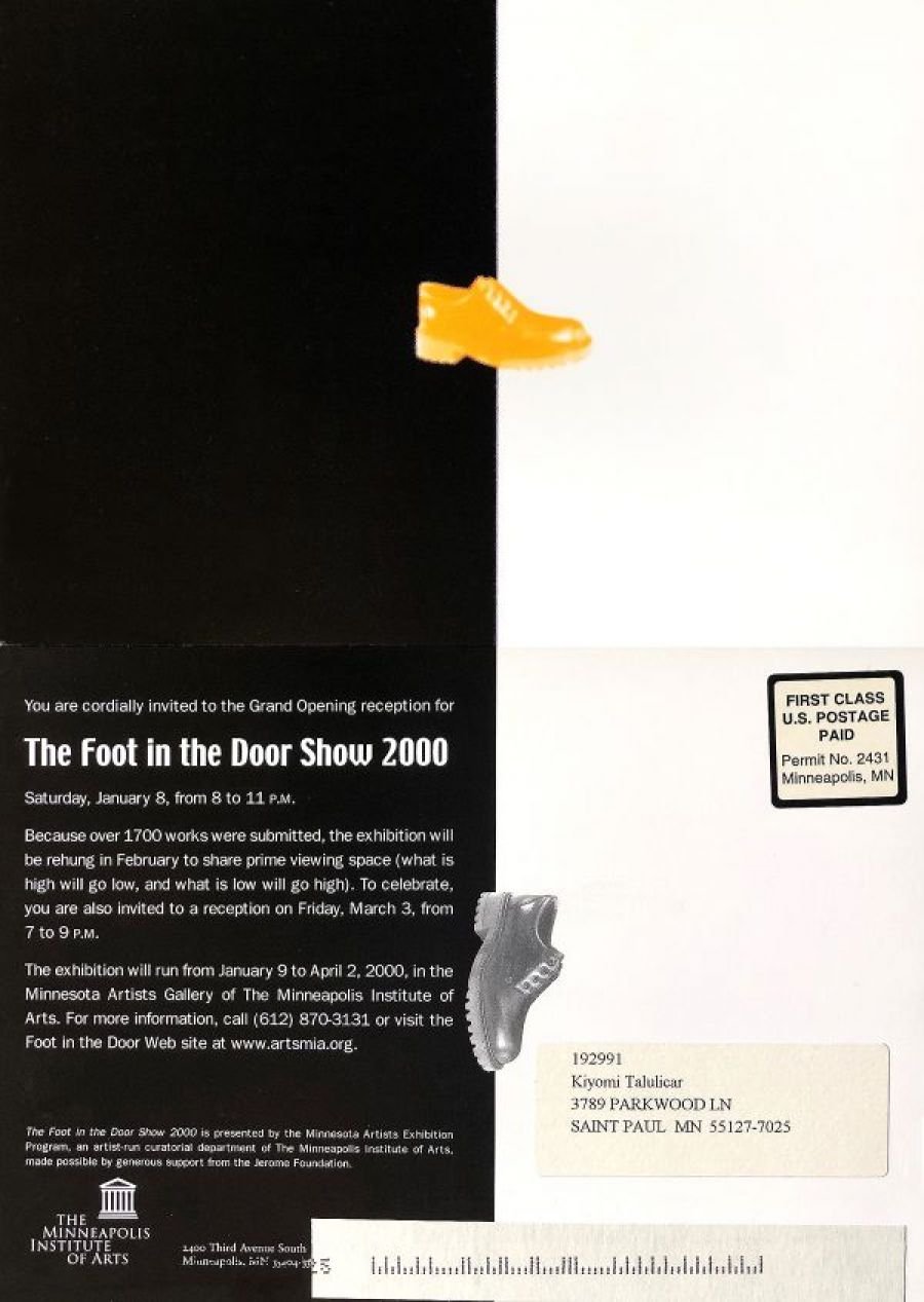Held once every 10 years, 'The Foot in the Door' is an open exhibition that celebrates the talent, diversity, and enthusiasm of Minnesota’s visual artists, the sole curatorial criteria being that the work fit within one cubic foot