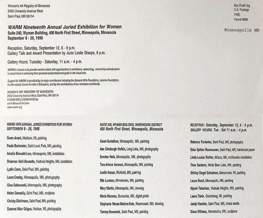 A Juried Exhibition organized by The Women's Art Registry of Minnesota (WARM)