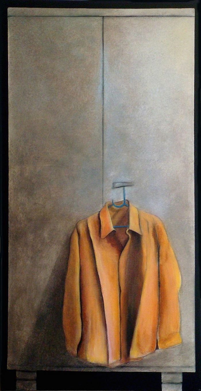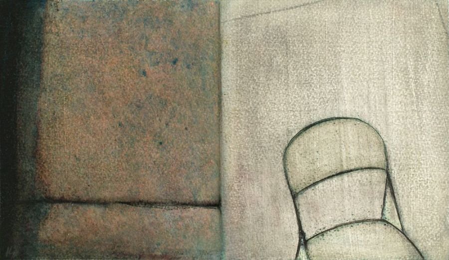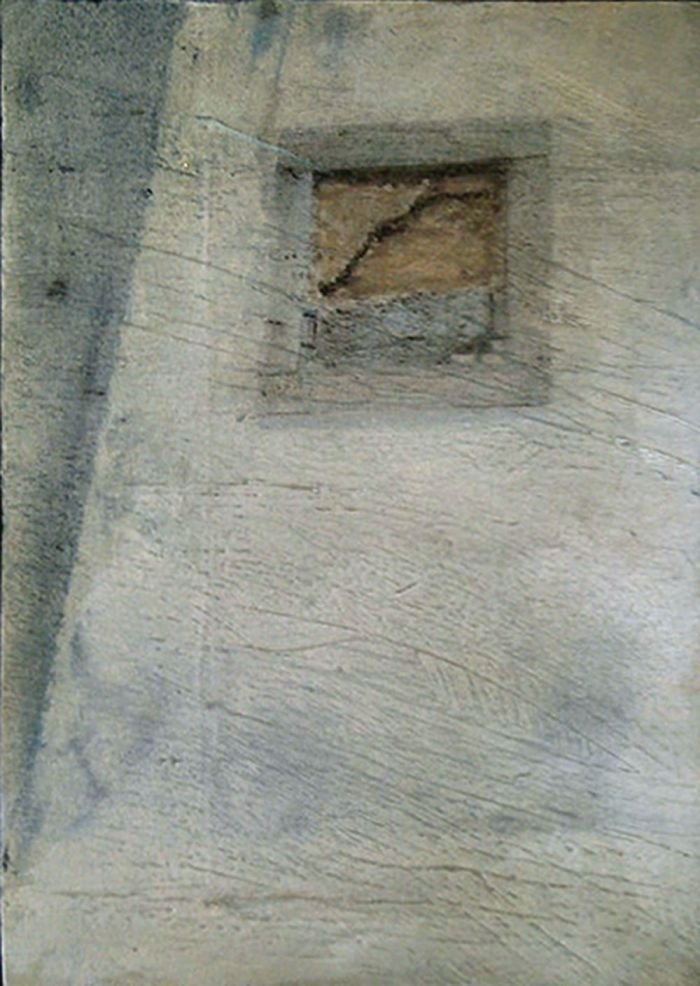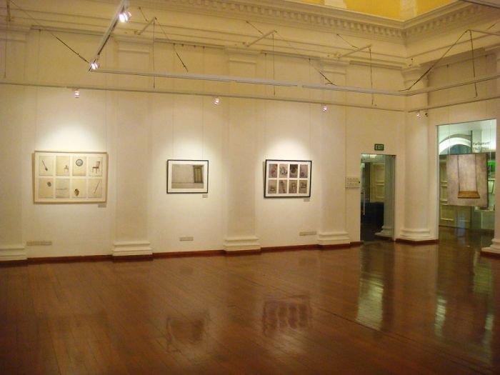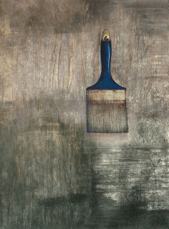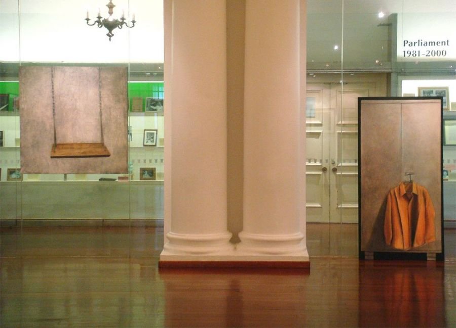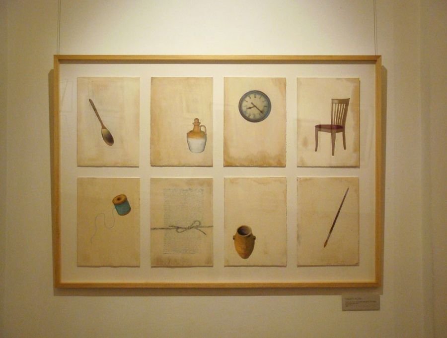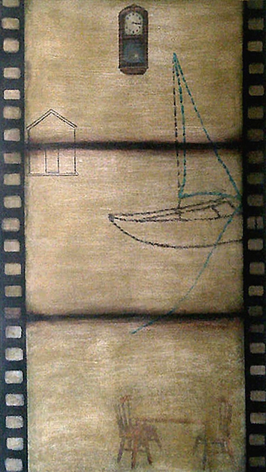 Sepia notes tinge the works with quiet melancholia and there is an unmistakable sense of loss in the images of a rocking horse, standing still, or elsewhere, a chair, left abandoned. Before long, you realize that there is an absence present, in the depiction of familiar household objects lying around, as if they belong to no one. Kiyomi's exquisitely layered paintings lament of times past.. the period of grieving is over but the memory of loss remains, and the leaf becomes a symbol of solitude, its fragile veins, trembling with diffidence. Will the darkness never cease?