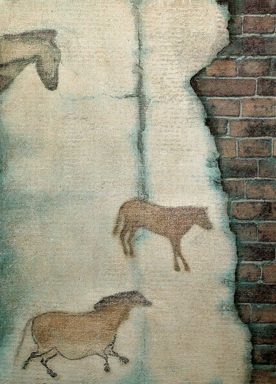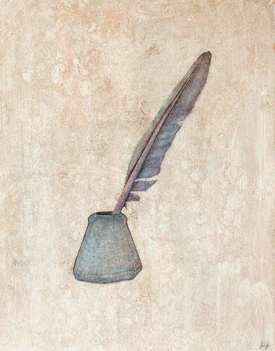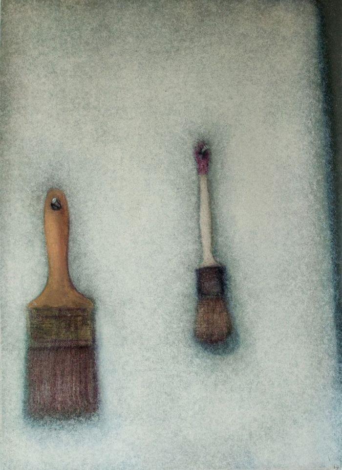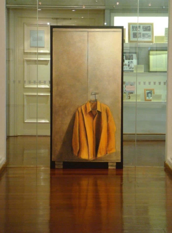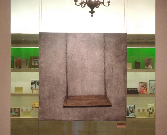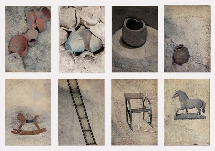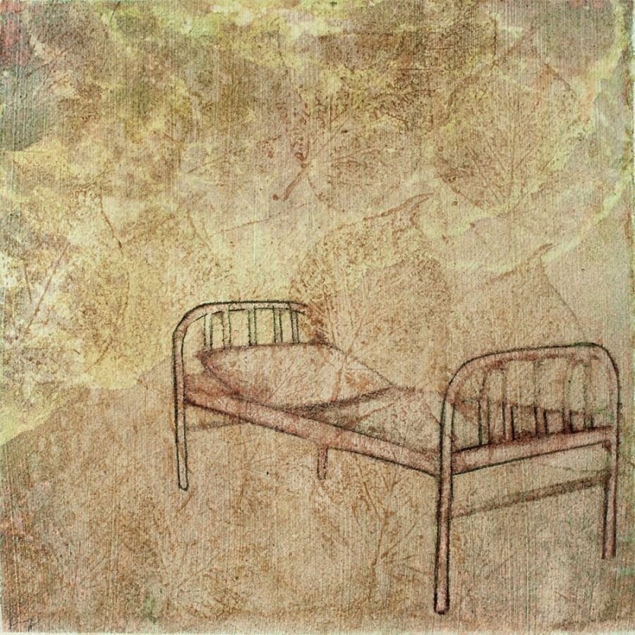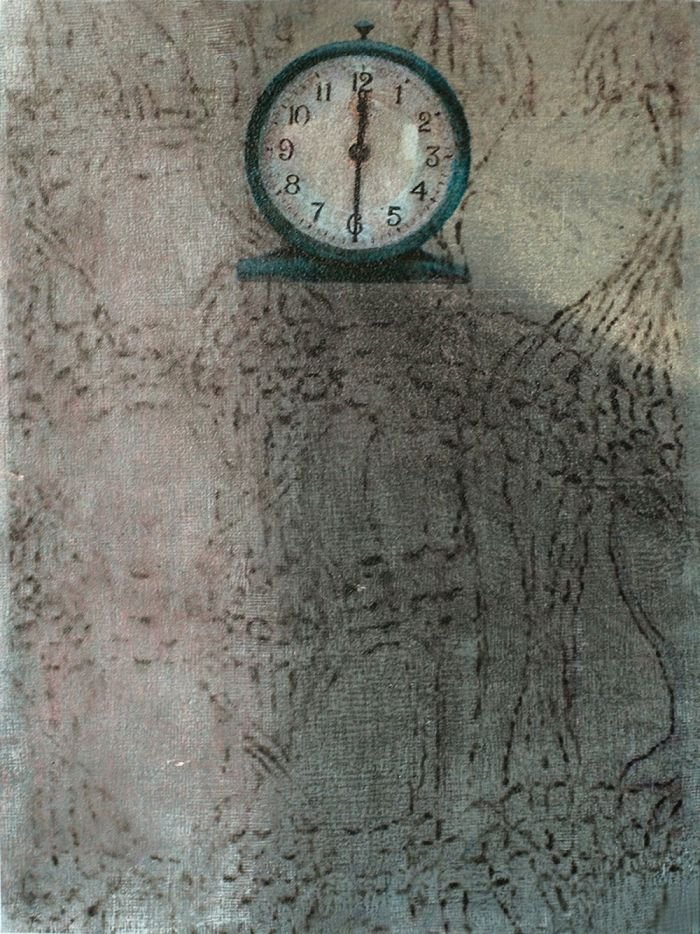 Sepia notes tinge the works with quiet melancholia and there is an unmistakable sense of loss in the images of a rocking horse, standing still, or elsewhere, a chair, left abandoned. Before long, you realize that there is an absence present, in the depiction of familiar household objects lying around, as if they belong to no one. Kiyomi's exquisitely layered paintings lament of times past.. the period of grieving is over but the memory of loss remains, and the leaf becomes a symbol of solitude, its fragile veins, trembling with diffidence. Will the darkness never cease?